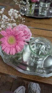 Die beiden Azubis, die meine Haare machen „dürfen“, sind toll und werden toll begleitet. Und überhaupt, ein Friseursalon, in dem man das Wasser zusammen mit Blümchen serviert bekommt (siehe Foto) und wo es auf dem Klo nach Palo Santo duftet… no more words needed! Bitte macht einen Laden in Hannover auf!