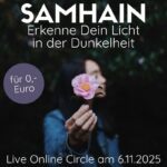Live Online Circle zu Samhain am 6. November 2025: Erkenne Dein Licht in der Dunkelheit! Am Tag des astrologischen Samhain 2025, zum Start in die drei dunkelsten Monate des Jahres, begleite ich Dich in eine tiefe Begegnung mit Dir selbst, der einzigartigen Kraft und Weisheit in Dir.